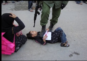 Was sehen Sie auf diesem Bild? Einen israelischen Soldaten, der ein kleines Mädchen quält? Falsch! Sie sehen einen Ausschnitt aus einem propagandistischen Straßentheater zur Förderung des Hass‘ auf Israel. Dennoch kursiert dieses Bild tausendfach bei vielen Israelkritikern als Beweis für angebliche israelische Unmenschlichkeit.