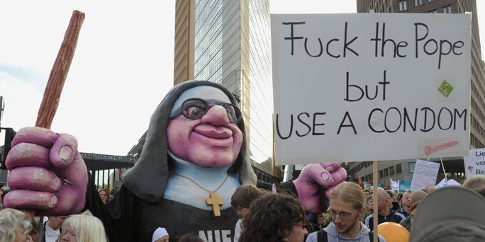 14. Die Darstellung eines Priesters als Kinderschänder.