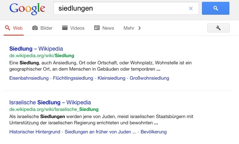 Geben Sie auf Google mal „Siedlungen“ ein, schon der zweite Treffer beschäftigt sich mit „jüdischen Siedlungen“.