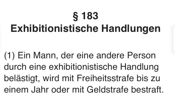 Ich habe da mal eine Frage an die Juristinnen: Haben Frauen in Deutschland ein Exhibitionistensonderrecht? Der Paragraf 183 StGB spricht schließlich nur von Männern: