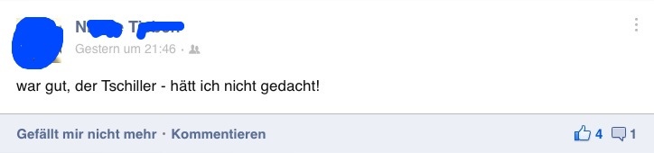 Bisher bot sich jeden Sonntag Abend auf Facebook das gleiche Bild: Tausende kotzten sich über den aktuellen Tatort aus, dem Rest war der Tatort egal. Gestern aber geschah etwas vollkommen Neues: Zwar fanden sich immer noch viele kritische Stimmen, die an Deutlichkeit nichts zu wünschen übrig ließen, aber zum ersten Mal häuften sich auch positive Kommentare und Statusmeldungen. Zum ersten Mal nutze eine bemerkbare Masse von Menschen Facebook, um zu posten, ihnen habe der Tatort gefallen. Der Tatort! Gefallen! Hier mal drei Beispiele aus meinem Freundeskreis: