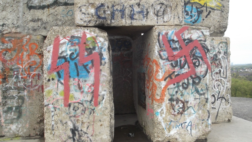 Wir haben es hier nicht mit irgendeiner Sehenswürdigkeit zu tun. Es ist eine der Hauptsehenswürdigkeiten der Stadt Gelsenkirchen, die 2010 zur Kulturhauptstadt Europas gehörte. Dort nun prangen Nazisymbole, vor denen sich die Touristen fotografieren lassen können.