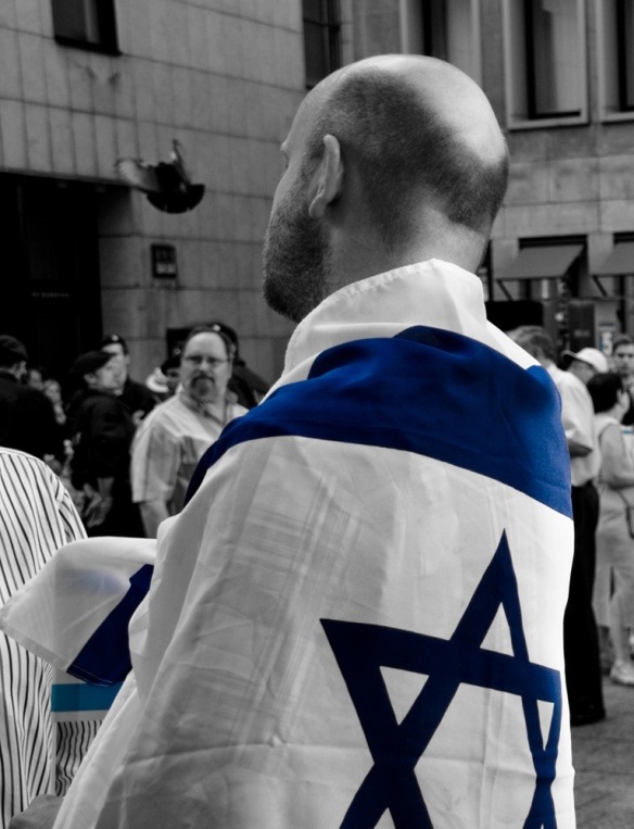 Dann marschieren alle laut und zuweilen falsch fröhliche hebräische Lieder und Gebete singend durch die Stadt bis zum Neumarkt. Ein Deutscher ohne Gnade der späten Geburt wagt ein hartes Wort gegen Juden zu erheben. Er bricht mitten im Wort ab, als er die Masse der Judenfreunde erblickt. Auf dem Weg werden an Passanten kleine Israelflaggen verteilt. Manche schwenken sie sogar. Am Ziel angelangt wird die israelische Hymne „Hatikva“, was übersetzt „Hoffnung“ heißt, gesungen. Man bedankt sich bei der Polizei, die mit Schrecken an den nächsten Tag denkt, und geht seines Weges nach Hause.