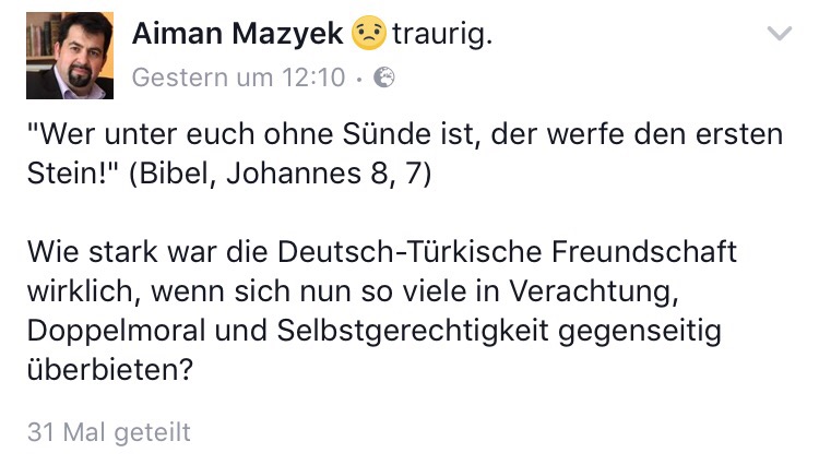 Nach dem Referendum in der Türkei schreibt Aiman Mazyek auf Facebook: