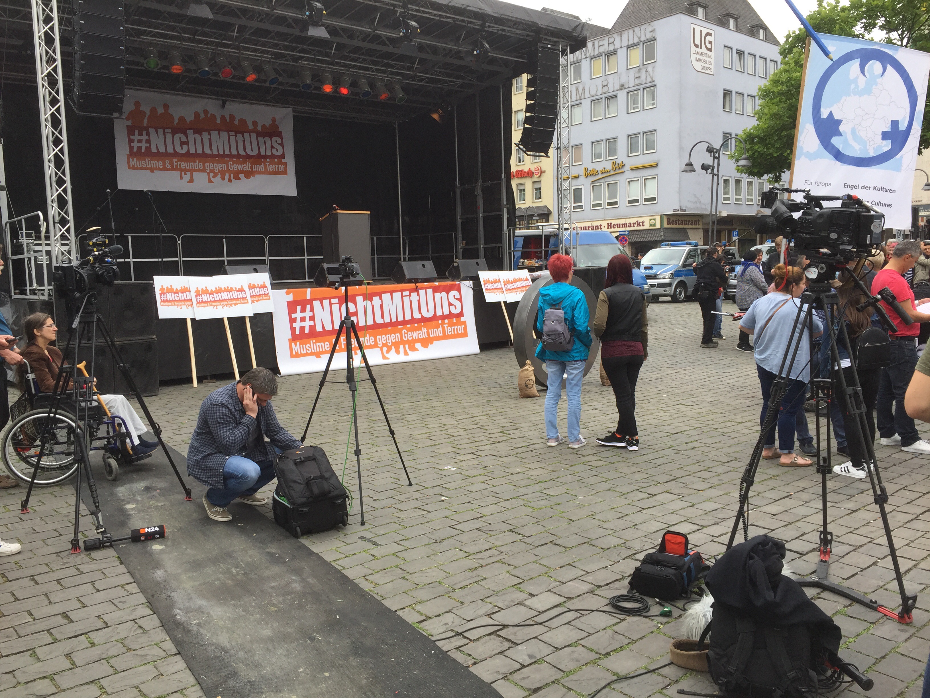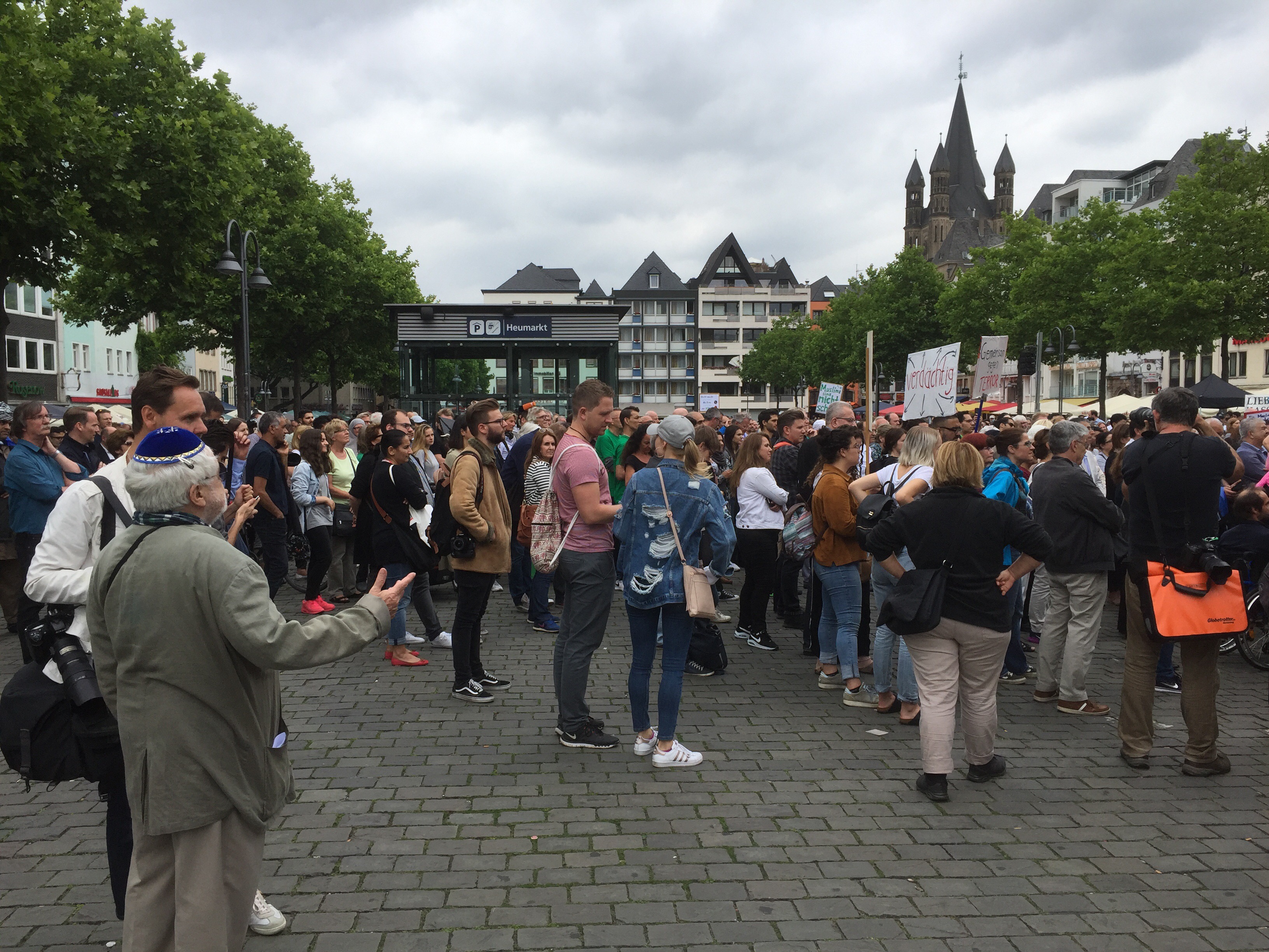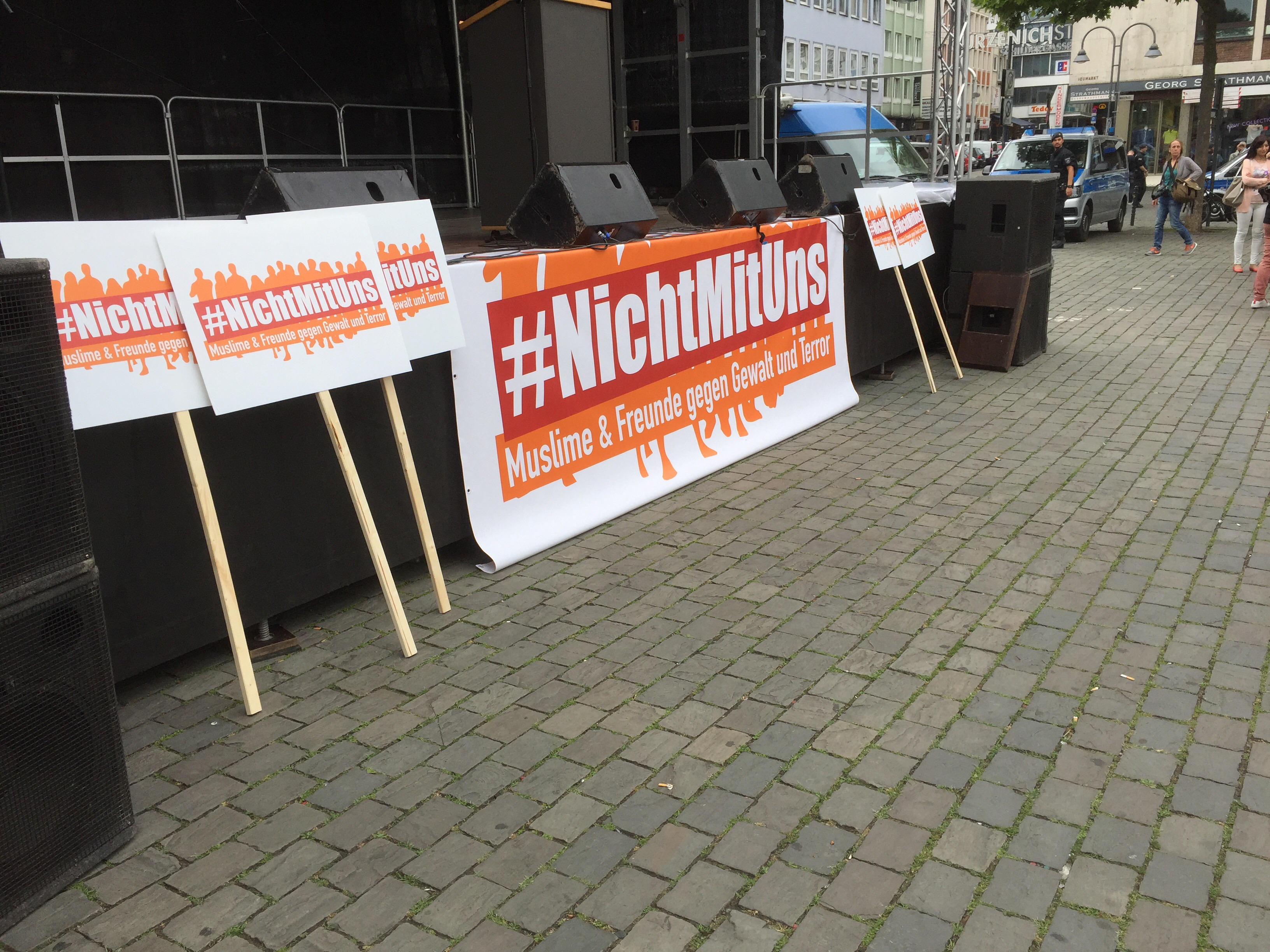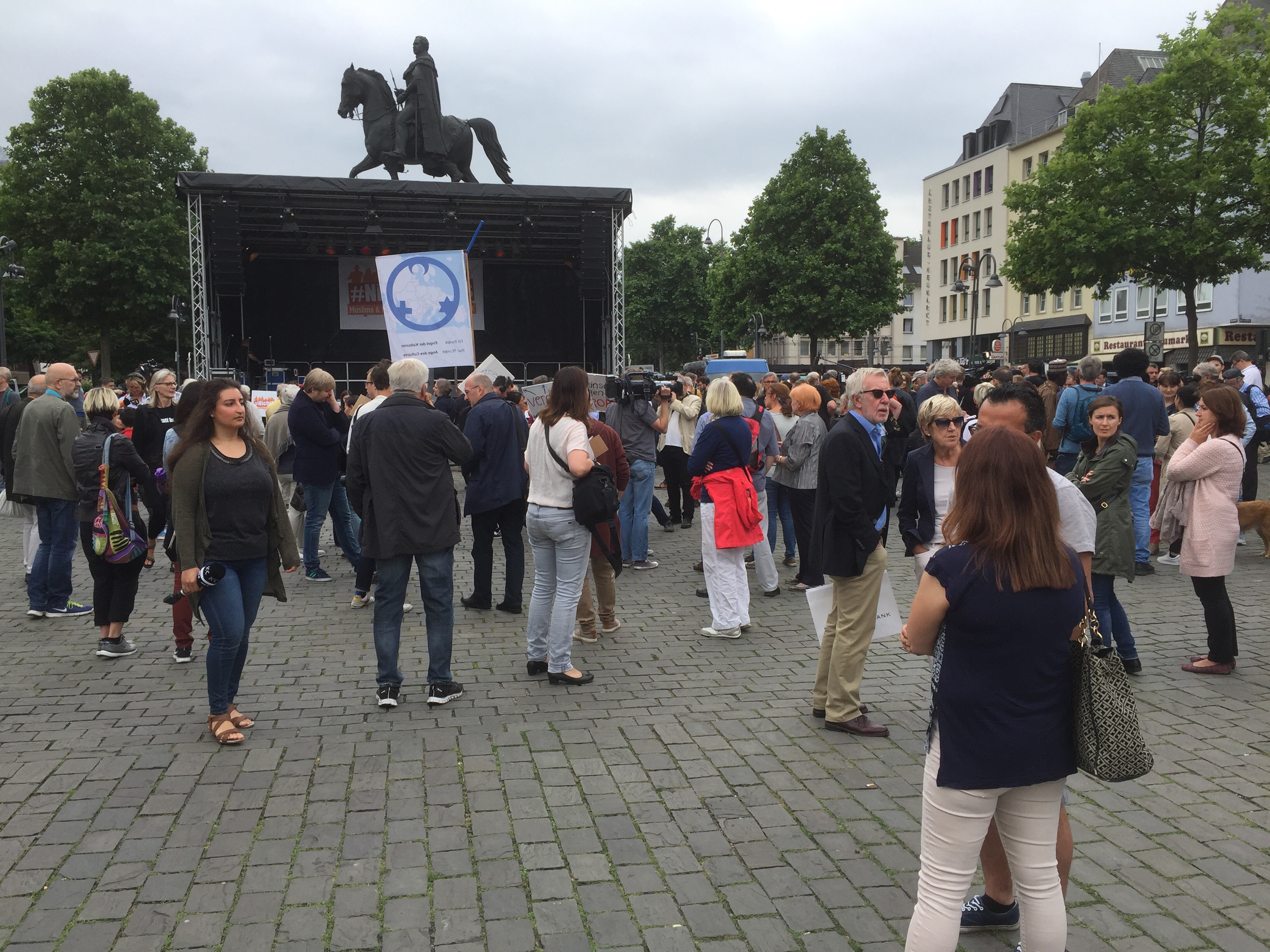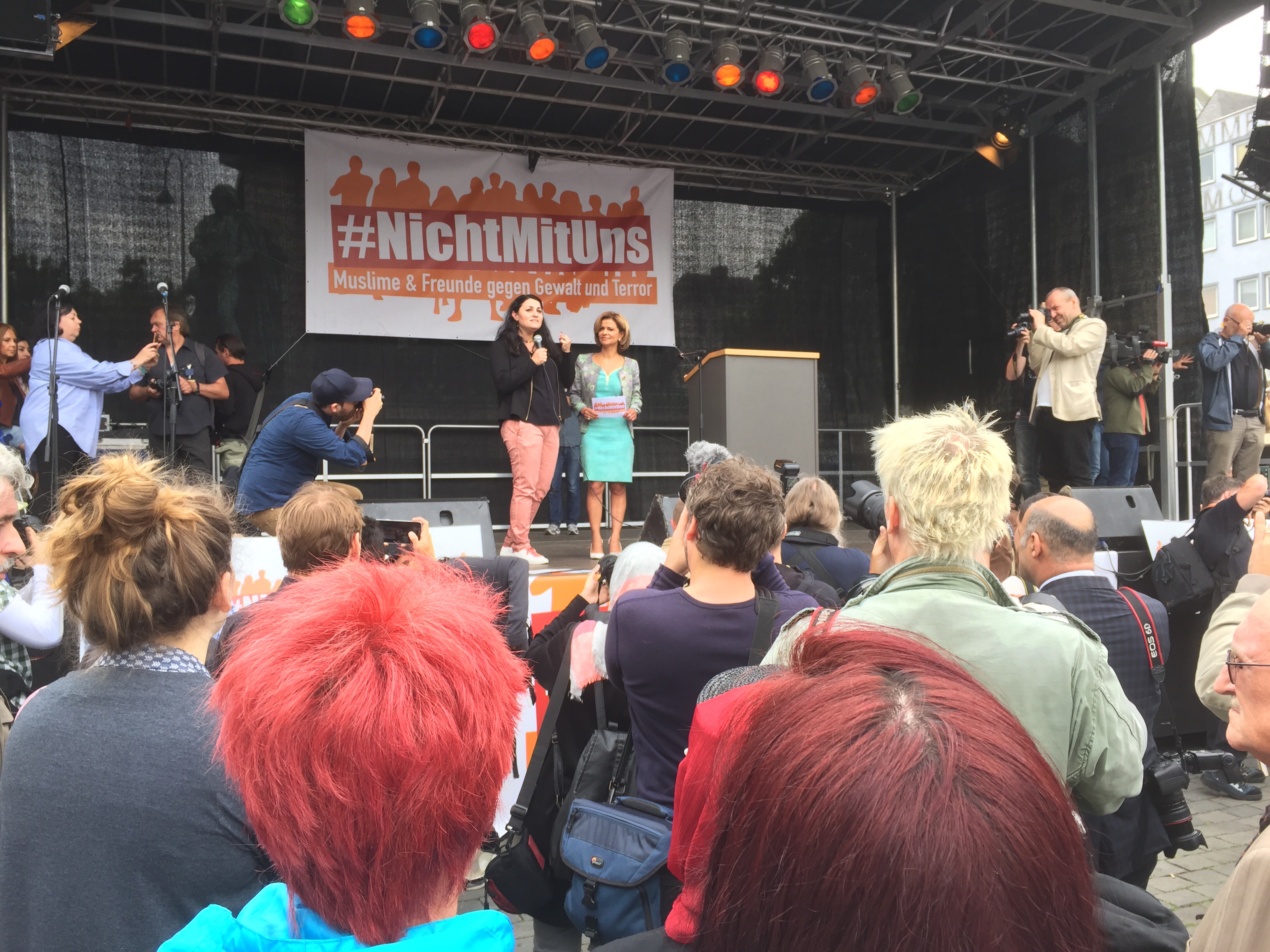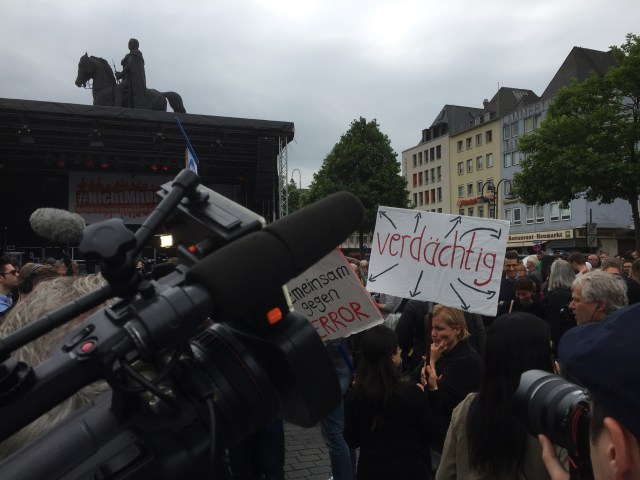 Von Leuten, die sich auf dem Heumarkt versammelten, gehörte ein großer Teil keiner muslimischen Gemeinde an. Mit etwas Wohlwollen demonstrierten heute in Köln 400 Muslime gegen den Terror. Lamya Kaddor erklärte im Vorfeld: