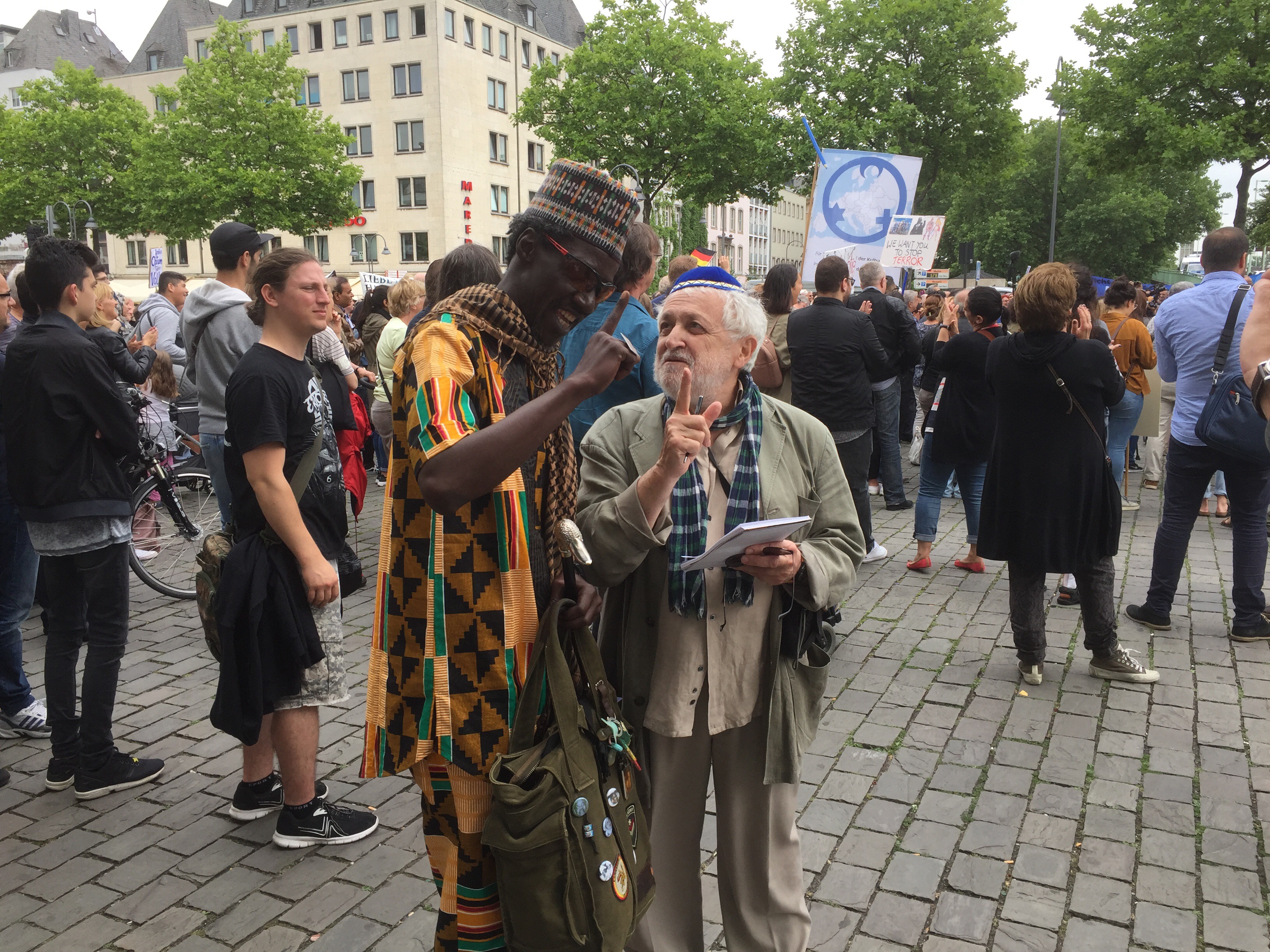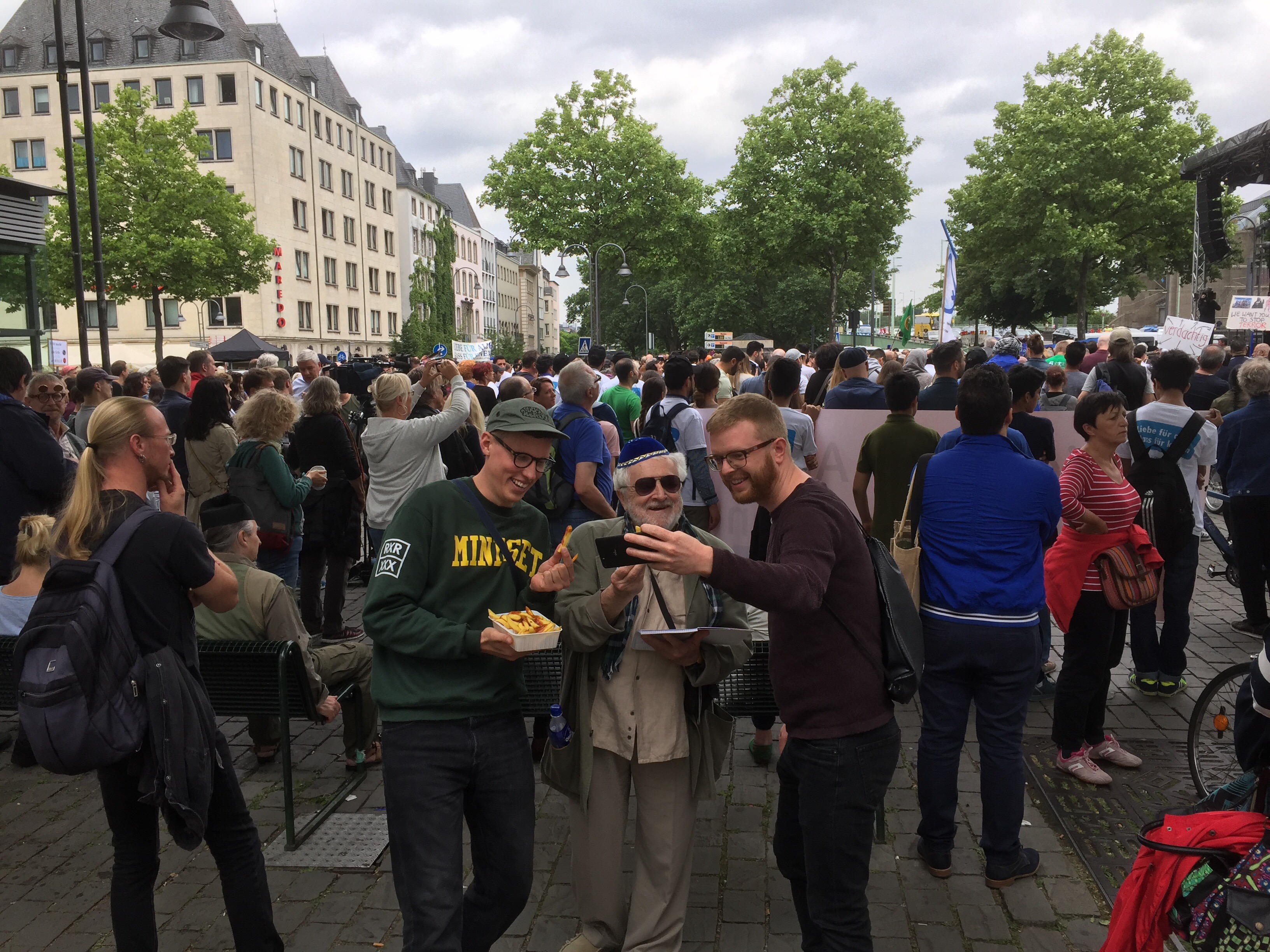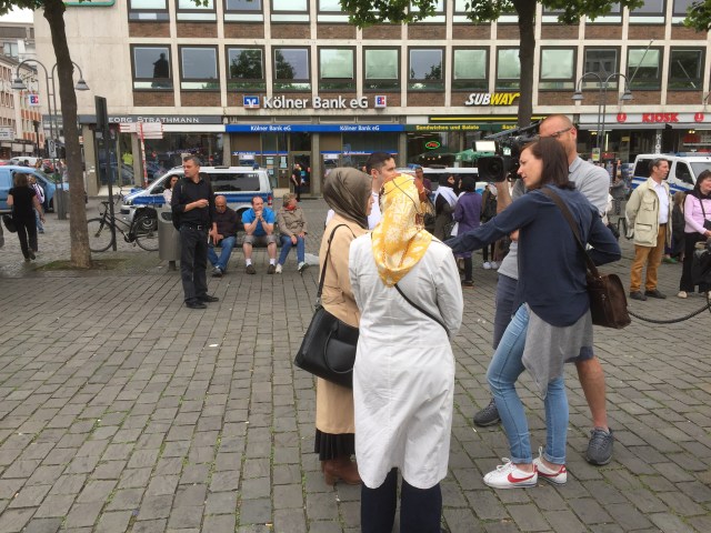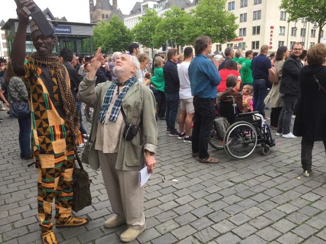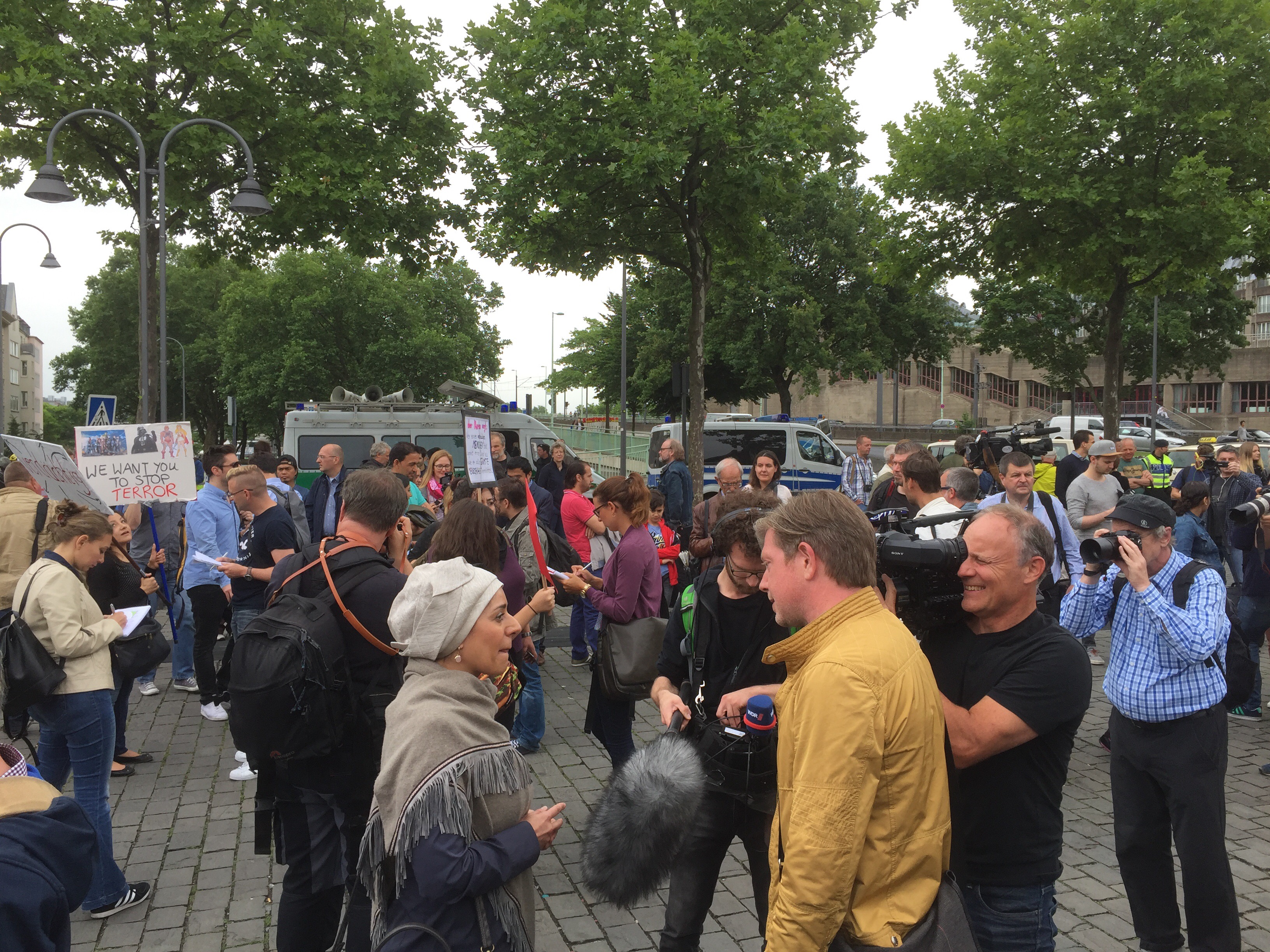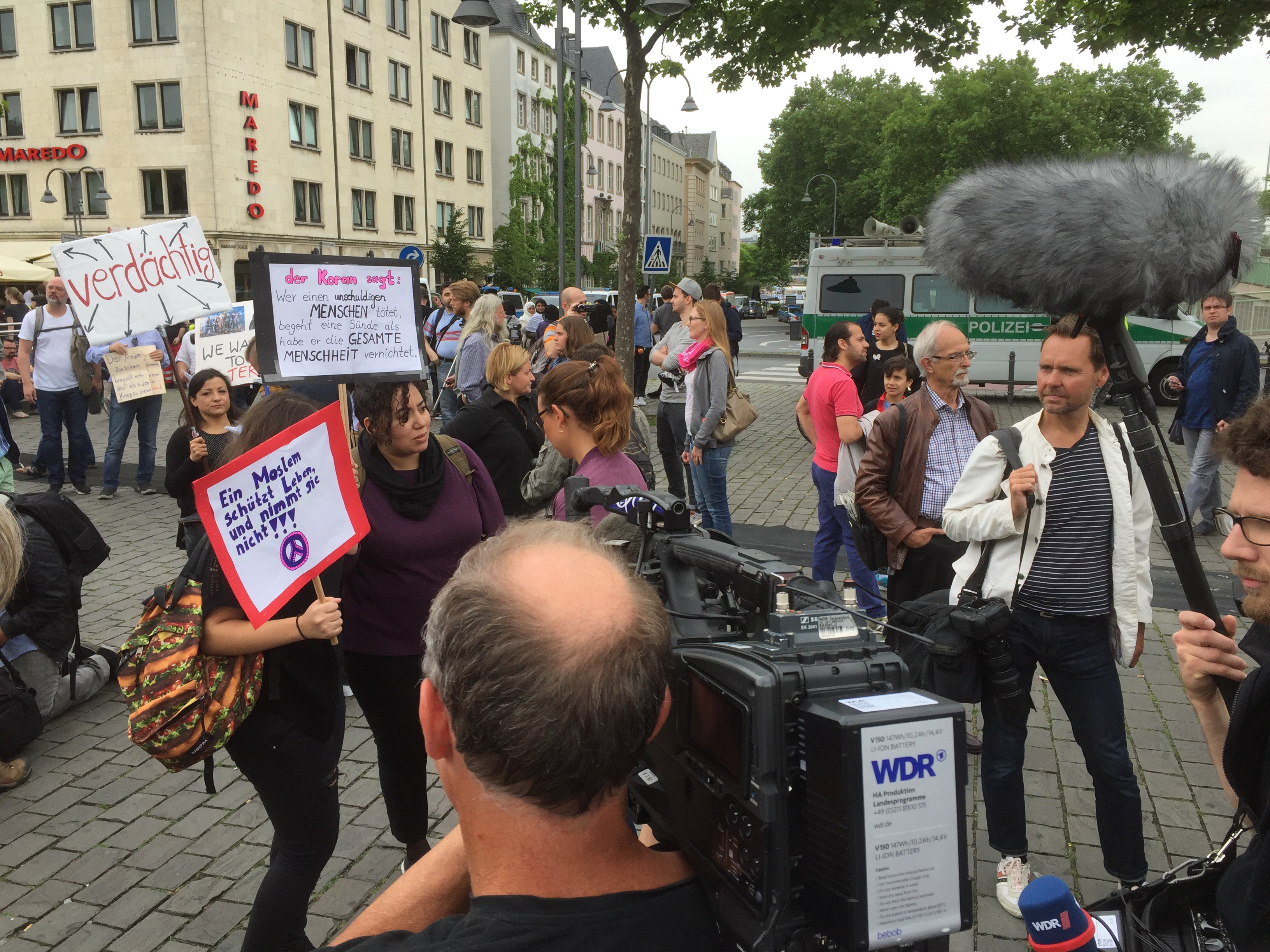 Von Leuten, die sich auf dem Heumarkt versammelten, gehörte ein großer Teil keiner muslimischen Gemeinde an. Mit etwas Wohlwollen demonstrierten heute in Köln 400 Muslime gegen den Terror. Lamya Kaddor erklärte im Vorfeld: