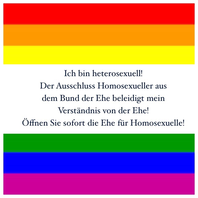 Nicht in meinem Namen! Öffnen Sie sofort die Ehe für Homosexuelle!
