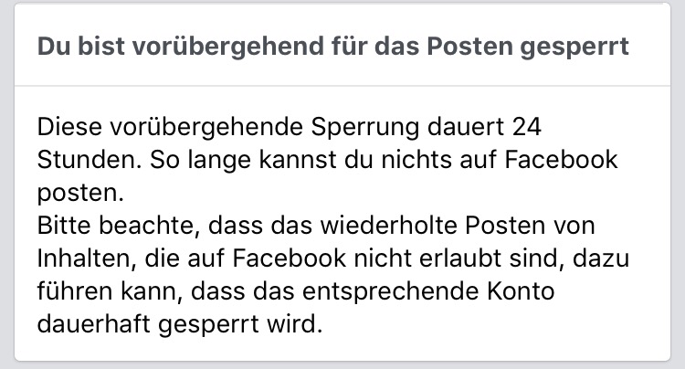 Es ist somit das zweite Mal in nur wenigen Tagen, dass ich von Facebook gesperrt wurde, weil ich gegen Antisemitismus geschrieben habe!
