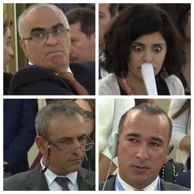Auch diese Rede wurde unterbrochen, unter anderem von Ägypten und Pakistan. Danach fuhr Hillel Neuer jedoch unbeeindruckt fort: