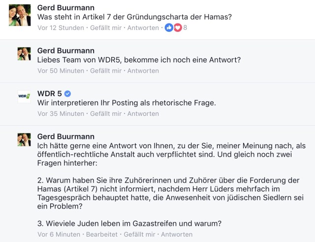 Bisher hat nur die Facebook-Redaktion von WDR5 geantwortet, die dafür aber umso deutlicher: