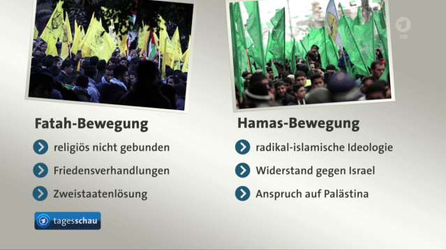 Hätte die Tagesschau all das nicht auch wenigstens erwähnen müssen? Wie stehen all diese Worte und Taten der Fatah in Zusammenhang mit der verkürzten Behauptung, die Fatah lasse sich auf Friedensverhandlungen ein und strebe eine Zweistaatenlösung an?