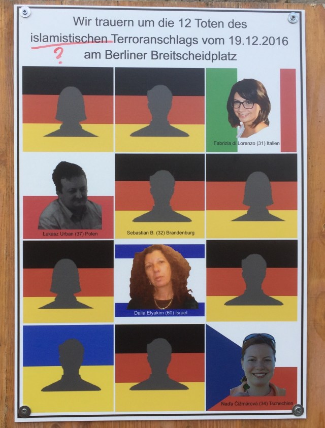 Als nach dem Anschlag vom 19. Dezember 2016 auf dem Weihnachtsmarkt in Berlin ein Erinnerungsplakat aufgehängt wurde, waren alle deutschen Opfer gesichts- und namenslos.