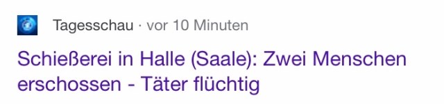 Die Taten fallen auf das jüdische Versöhnungsfest Jom Kippur. Es ist der höchste jüdischen Feiertag überhaupt und wird als Ruhe- und Fastentag begangen. Es waren daher über siebzig Menschen in der Synagoge. Die Tagesschau schreibt: „Schießerei in Halle“
