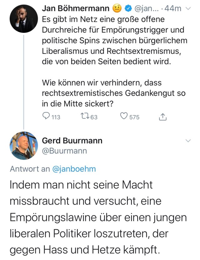Es dauert im Netz knapp 12 Stunden, bis rechtsextreme Empörungstrigger von der FDP Recklinghausen bis zu den Kernfaschos der Identitären Bewegung durchgereicht werden. Wie schnell, anonym und einfach läuft es andersherum? Und wie oft ist das in den letzten 5 Jahren geschehen?