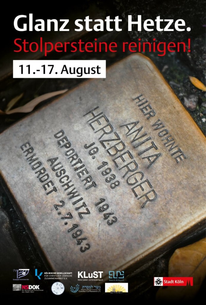 Vom 11. bis zum 17. August 2020 sollen Kölner Bürgerinnen und Bürger die sogenannten Stolpersteine putzen. Die „Stolpersteine“ sind ein Projekt des Künstlers Gunter Demnig, das im Jahr 1992 begann. Mit im Boden verlegten kleinen Gedenktafeln soll an das Schicksal der Menschen erinnert werden, die in der Zeit des Nationalsozialismus verfolgt, ermordet, deportiert, vertrieben oder in den Suizid getrieben wurden.