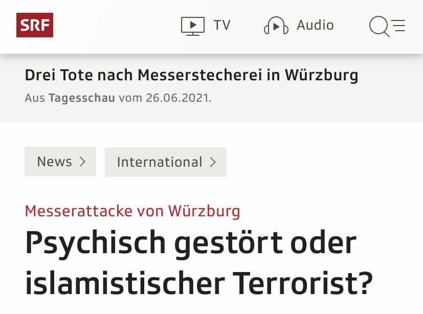 Wenn ein Terrorist bei der Tat „Allahu Akbar“ ruft, dann muss man diesen Wahnsinn ernst nehmen. Stellen wir uns nur mal vor, ein Terrorist würde bei Tat laut „Heil Hitler“ brüllen und die Tagesschau würde berichten: „Motiv bisher unklar“.