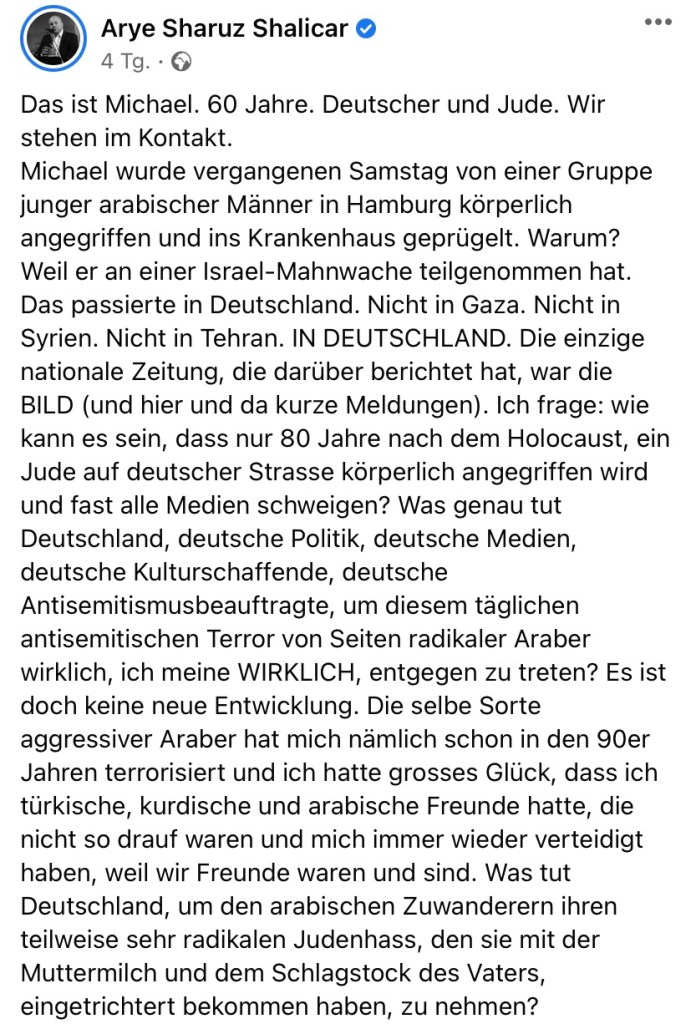 Über den Mann, der in Hamburg zusammengeschlagen wurde, schreibt Arye Sharuz Shalicar: