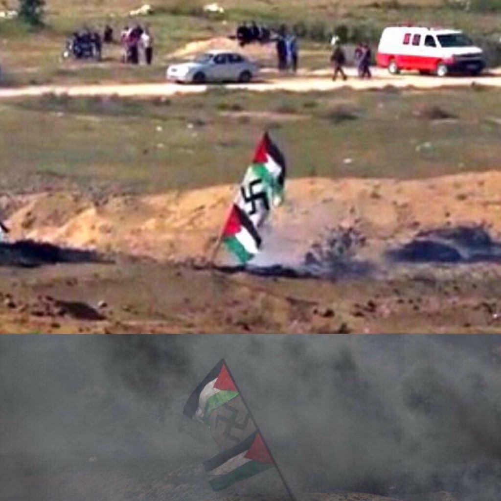 Im Gazastreifen wird die Flagge Palästina immer wieder stolz in Verbindung mit dem Hakenkreuz gezeigt.