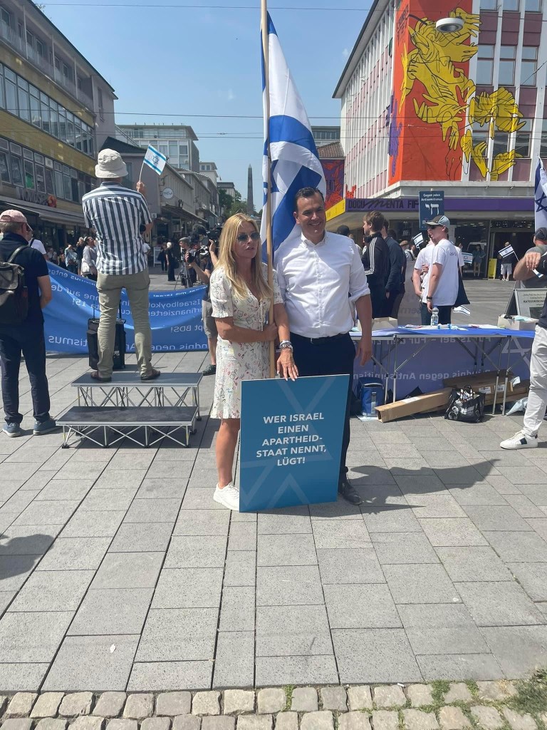 „Wer Israel einen Apartheid-Staat nennt, lügt“ steht auf dem Schild. Eine ausführliche Erklärung zu dieser Aussage finden Sie auf Tapfer im Nirgendwo in dem Artikel „Israel ist kein Apartheid-Staat“.