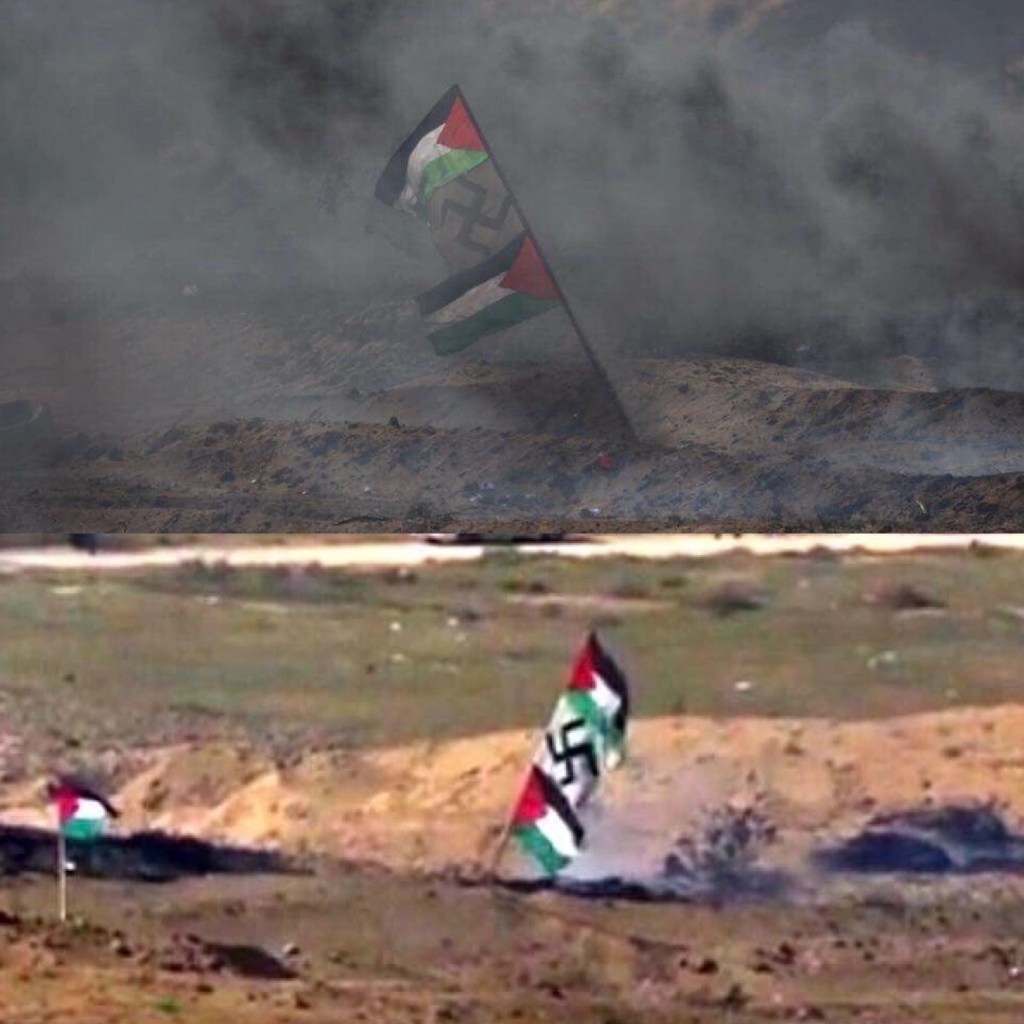 Die Antizionisten sehen sich klar in der Tradition des Antisemitismus. Diese beiden Bilder zum Beispiel wurden im April 2018 im Gazastreifen gemacht: